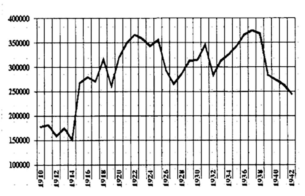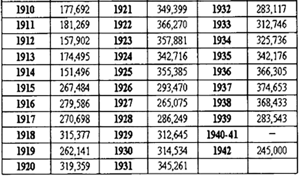Bảng 2. Số lượng thành viên theo từng năm, 1910-1942